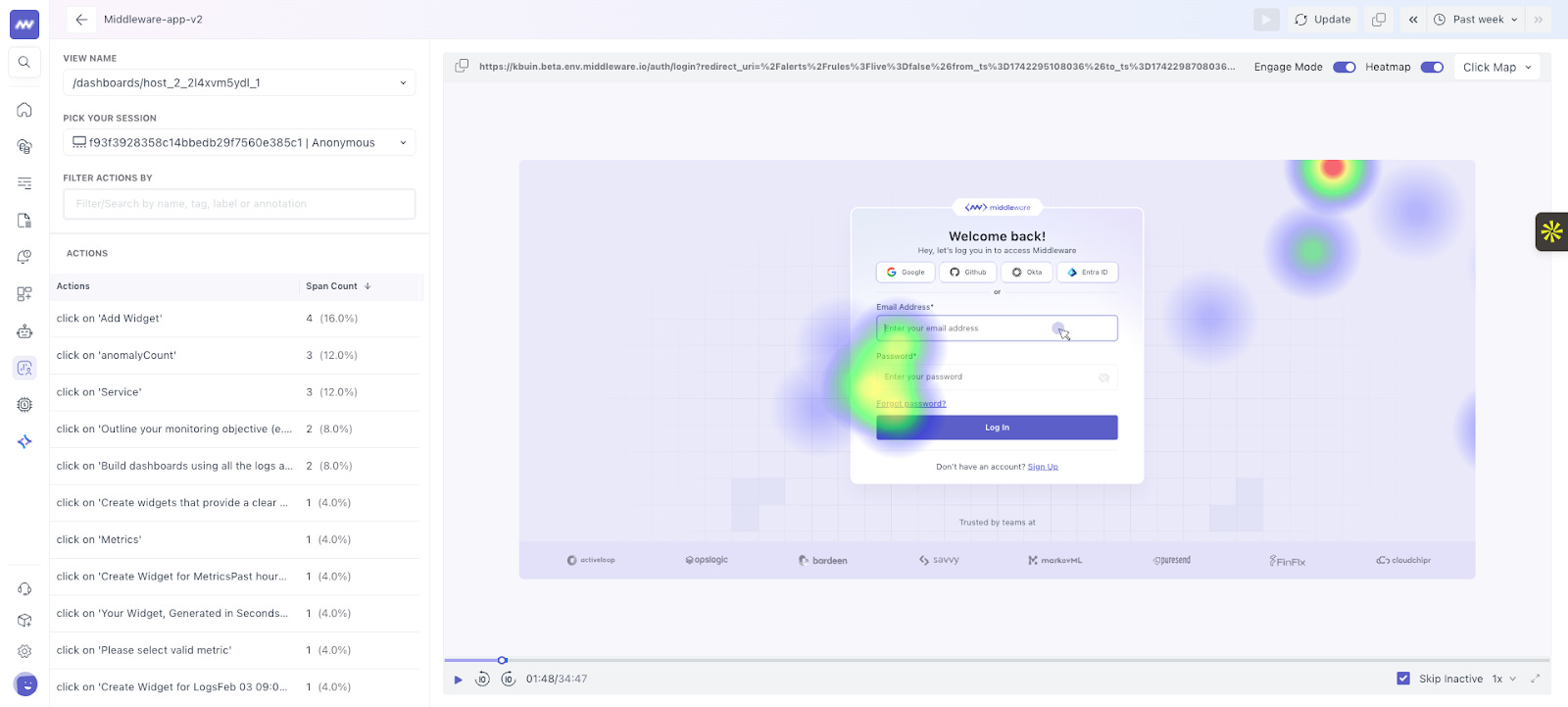 identify high-click areas and rage clicks.
