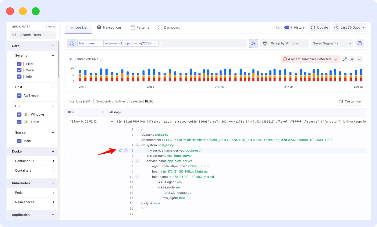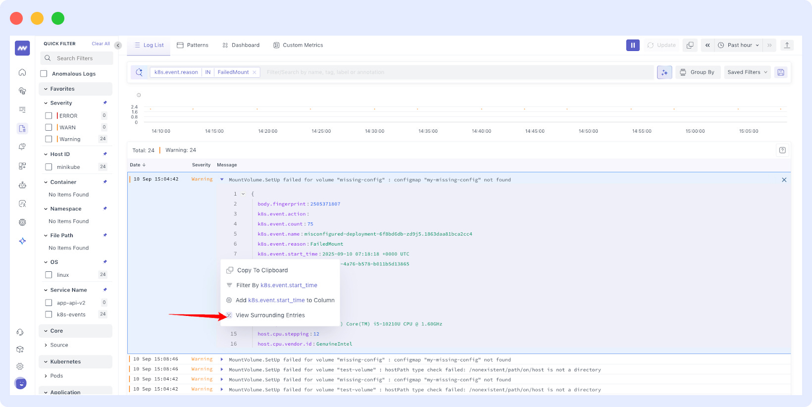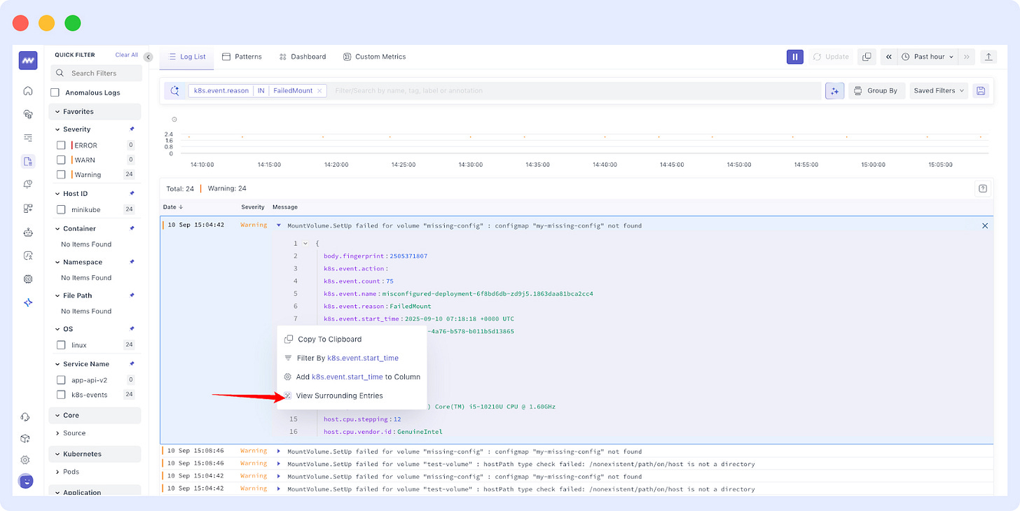 Surrounding Logs: View logs with the same attribute directly using the new “Surrounding Logs” option — perfect for faster troubleshooting.